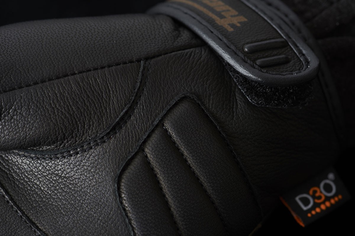 Проблемные зоны, наиболее часто страдающие при падениях (ладони, манжеты, пальцы), сделаны с удвоенным слоем кожи и дополнительными вставками из пеноматериала;