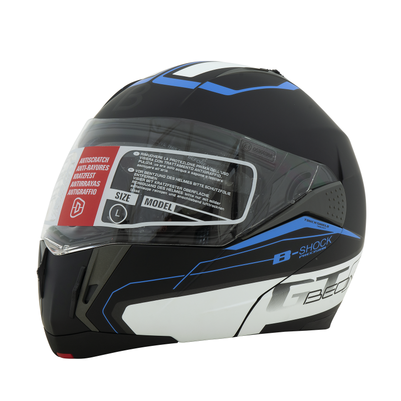Туристический шлем Flip-Up с дополнительным тёмным визором от солнца. Выполнен из пластика ABS. Отличается удобством использования и высоким акустическим комфортом.Сложная форма скорлупы шлема сделана для увеличения прочности и жёсткости оболочки, она обеспечивает низкий уровень шума и хорошую аэродинамику на высоких скоростях. Механизм открытия «челюсти» с клавишей на подбородке может управляться одной рукой.