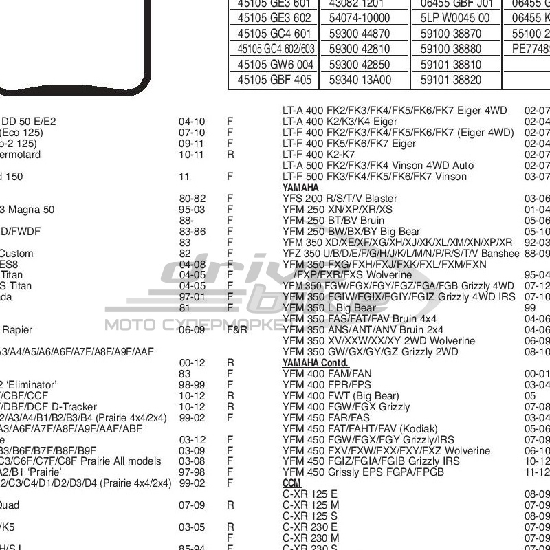 YAMAHA YFM350 92-03 F