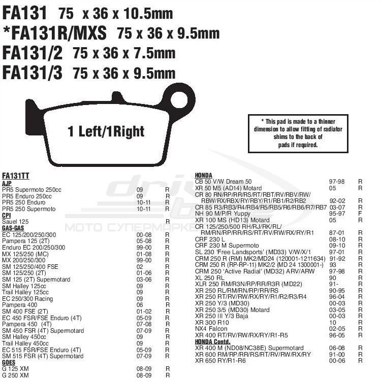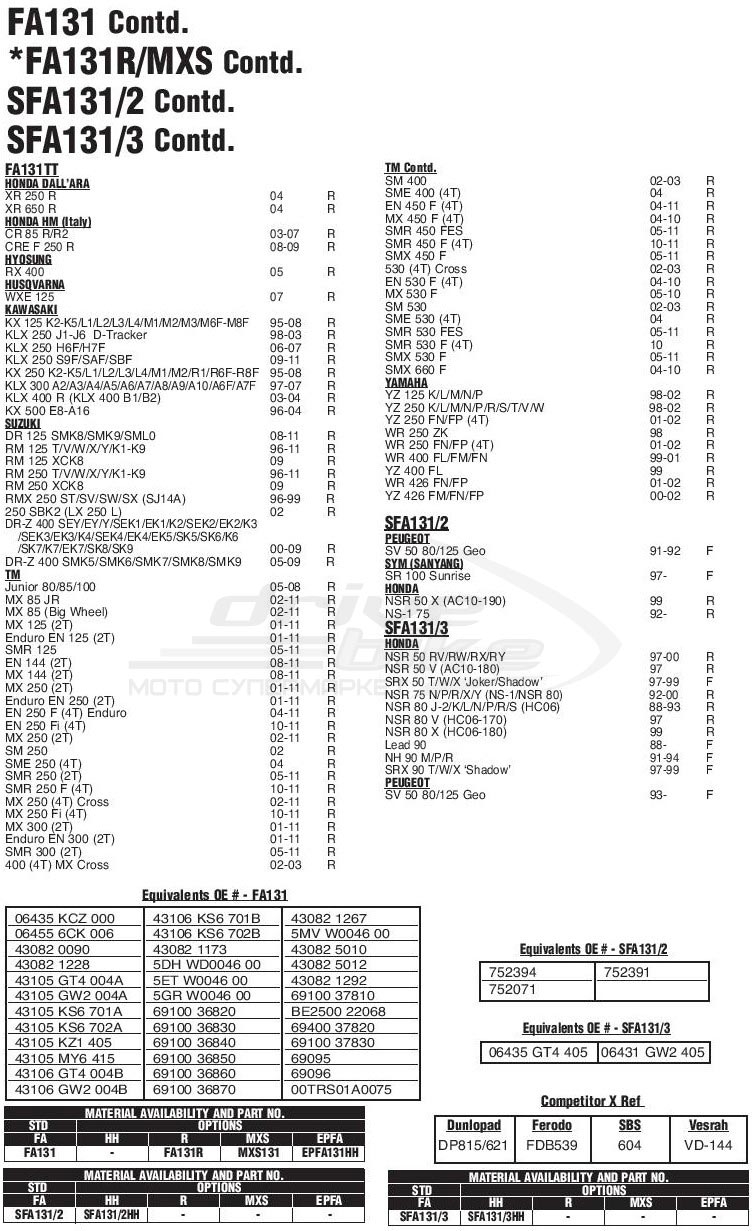 Тормозные колодки EBC FA131R серии Aramid обеспечивают эффективное торможение при любых погодных условиях и стабильные характеристики в независимости . В составе колодок присутсвует материал Aramid, который используется для предотвращения перегрева и преждевременного истирания тормозных колодок, что гарантирует стабильное торможение и длительный срок службы. Имеют хорошую износостойкость и не агрессивны к тормозным дискам. Рекомендованы для использования на классических мотоциклах, чопперах и крузерах.Эта деталь применяется на мотоциклах следующих моделей (полный список см. на картинках-сканах каталога):