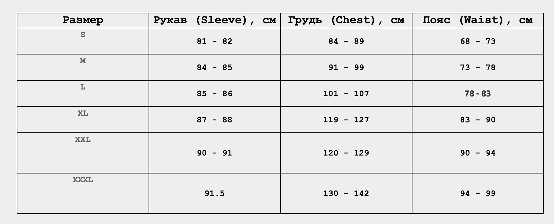 Посмотреть таблицы размеров